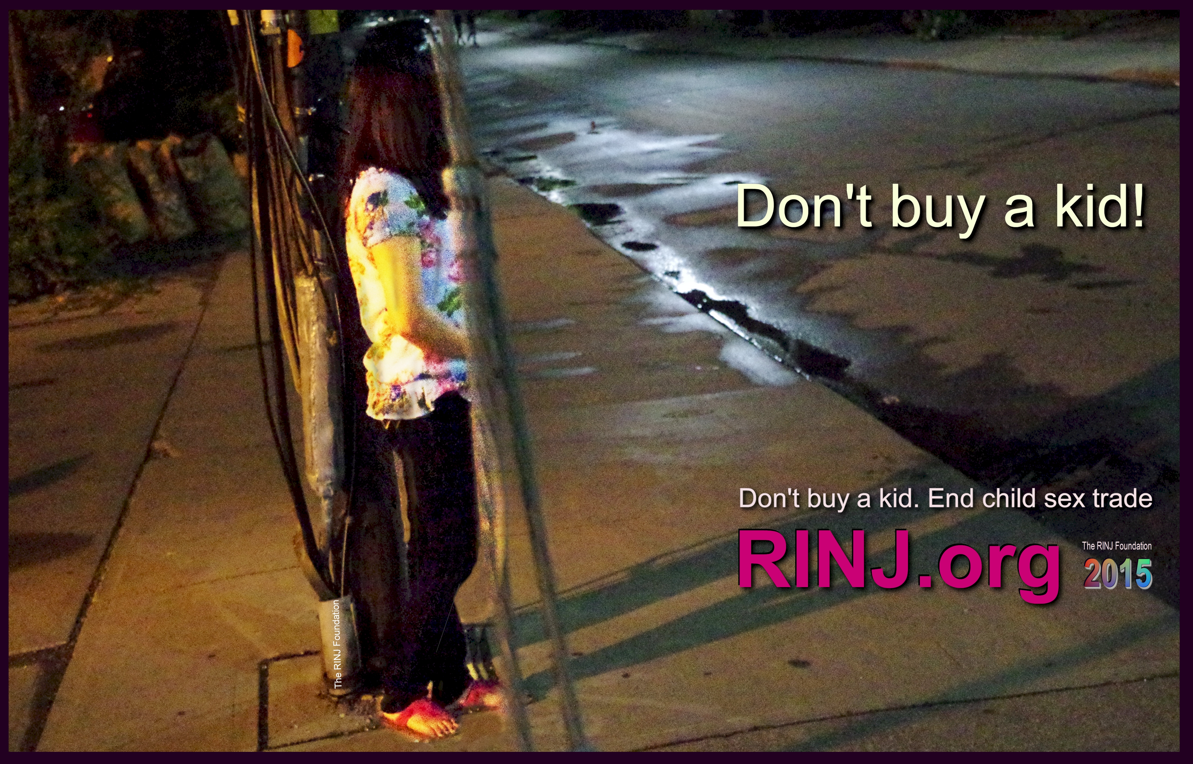 Could we build a groundswell of reaction to this crime and extinguish the problem? Do you believe we could create a ‘culture’ wherein buying a kid for sex was so heinous that no one would even think of it let alone do this horrible thing? Spread the word. The RINJ Foundation’s volunteers all over the world are watching the conduct of “men” who would buy kids. They are watched. Kids on the lose will be given safe haven. People who buy kids will be secretly photographed and prosecuted. Whatever it takes, this crime must end.