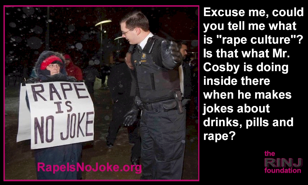 Why #Boycott #BillCosby?Because at some point we need to say “no” to people who are doing comedy tours or other money-makers on the basis of publicity they have received from survivors of their alleged sexual violence. In detail we have examined many complaints and while dismissing none, note that some comprise criminality to a horrid degree; some are boldly misogynistic and criminal; few are just revoltingly immoral with nominal criminality if any, depending on the jurisdiction. That’s a fair and generous assessment of the balance of probability of the accused’s culpability. Should women and children be subjected to the kind of humiliation Bill Cosby has subjected to the select group of women and teens who have dared to complain about his sexual malfeasance? No. That’s our point. The argument that Cosby has not been convicted of his alleged offences does not hold any water with us. RINJ has boycotted and even blockaded large corporations and so-called “comedians” like Daniel Tosh (http://youtu.be/a4VV2t4Zlx0) for dangerously promoting rape culture. Only 6% of rape crimes ever lead to a prosecution of any kind. Statistically 96% to 98% of all sexual assault accusations prove to be true. For most major crime the false allegation factor is usually only 2% and in study after study, sex crime shows little to no variance in this context in any country. On the balance of probability the complaints against Cosby are a gold standard for their probability of truthfulness. Mr. Cosby’s conduct of trying to make money from the woes of women he has allegedly victimized speak to his character and also his probability of guilt. His cavalier attitude makes this worse. On the balance of probability The RINJ Foundation’s board has made a decision to boycott this person. How one conducts their behaviour will inevitably determine how their life will go. #BillCosby made his choices and his conduct has seriously degraded and tarnished his life’s work. He should not have the stage nor a microphone to advance misogyny or rape culture again in his life and should spend the rest of his days making recompense to the people he has victimized. That is the opinion of The RINJ Foundation. |